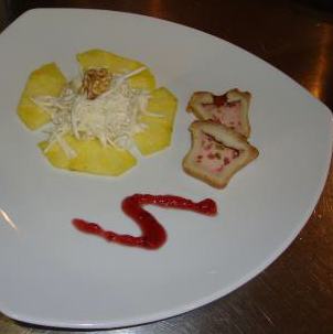 Mit Ananas und Baumnusskerne garnieren